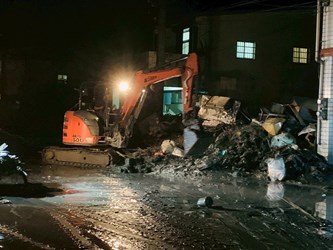 馬太鞍溪堰塞湖溢堤造成光復鄉道路與民宅嚴重淤積。為加速災區復原,台中市政府建設局救災團隊昨(29)日白天才歷經一整天的淤泥清運與道路搶通,夜幕降臨後仍未休息,再度投入中正路一段清理。隊員們挑燈奮戰在泥濘中,只為早一步替居民打開回家的路。